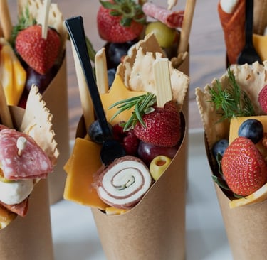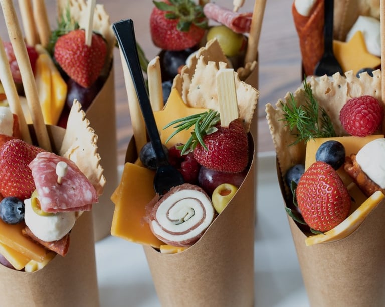 Our individually wrapped cups are perfect for any event when you're looking for the convenience of a delicious pre-made snack. Our cups will be delivered at the appropriate temperature and transferred to your refrigeration, or served immediately; they can be left unrefrigerated for up to four hours. Also great for: